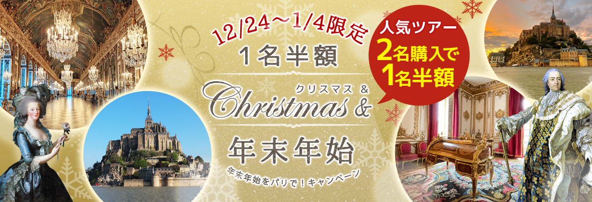 - キャンペーン対象商品は12/24~1/4の催行日の上記4ツアーとなります。
